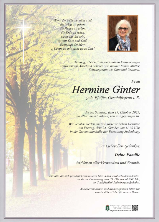 Unser aufrichtiges Beileid der Familie und wir danken für die schönen Erinnerungen mit eurer Ginzi Oma – Ruhe in Frieden liebe Ginzi .