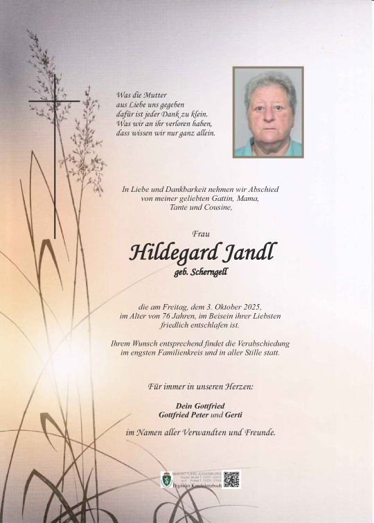 Lieber Gottfried, mit tiefen Mitgefühl habe ich vom Tod deiner lieben Hildegard erfahren. Es ist schwer, in solchen Momenten tröstende Worte zu finden.