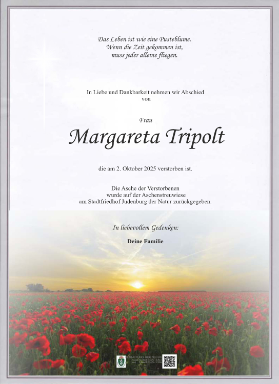 Unser aufrichtiges Beileid Helmut und Dagmar Tripolt, wir behalten Grete in lieber Erinnerung