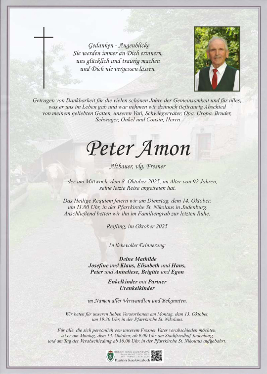 Lieber Onkel Peter, Ruhe in Frieden, die Engerl im Himmel mögen Dir ein schönes Platzerl richten R.I.P.