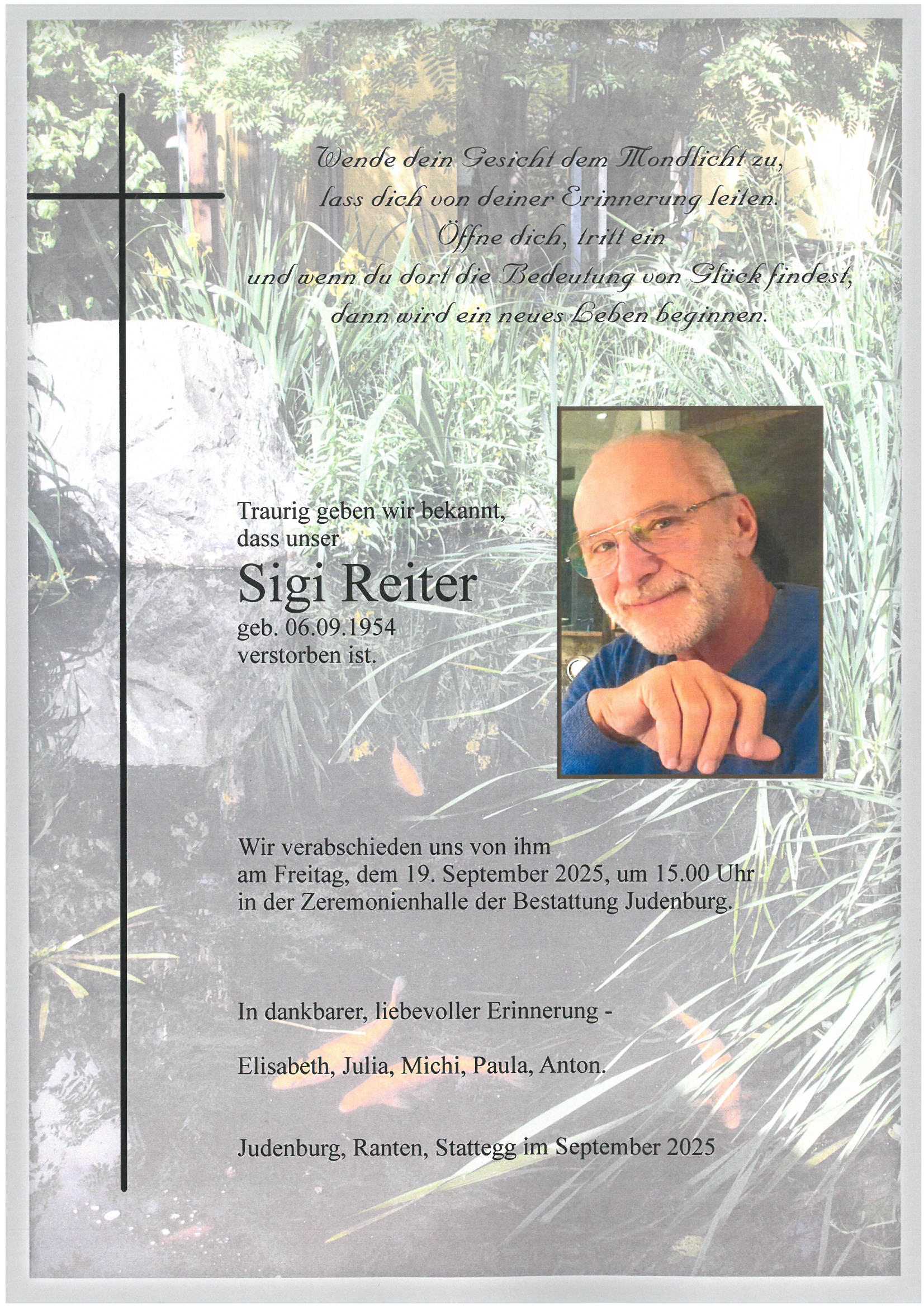 Meine aufrichtige Teilnahme und Betroffenheit. Ich behalte Sigi als wertvollen und aufrichtigen Menschen im Herzen und wünsche dir und der Familie viel Kraft für die kommende Zeit.